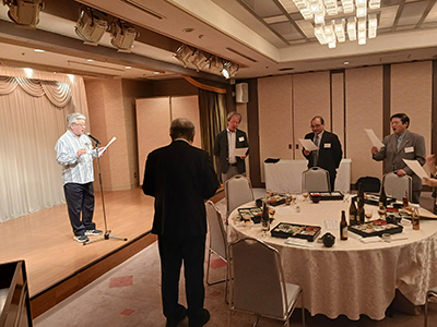 そして総会に引き続き懇親会は、稲田裕彦富山薬窓会会長のご発声に始まり、吉野 泰山副支部長の指揮のもと、懐かしい校歌斉唱もあり、広く世代を超えて親睦を深めることができました。